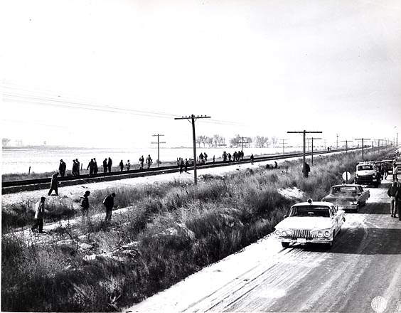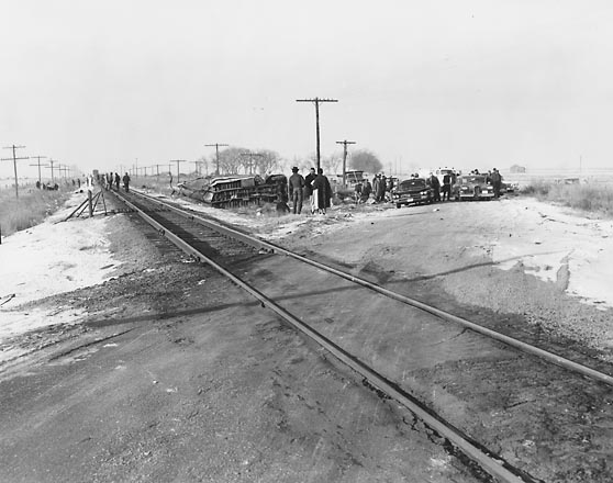 In his mind, he sees back to 1961, to the day a yellow Union Pacific passenger train, streaking down these same tracks at close to 80 mph, slashed through a school bus less than five miles away.