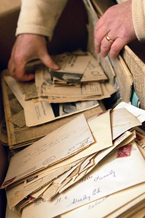 Becky Badley reaches into a brown grocery sack overflowing with condolence cards mailed to her parents after her sister, Linda Alles, died in the accident.